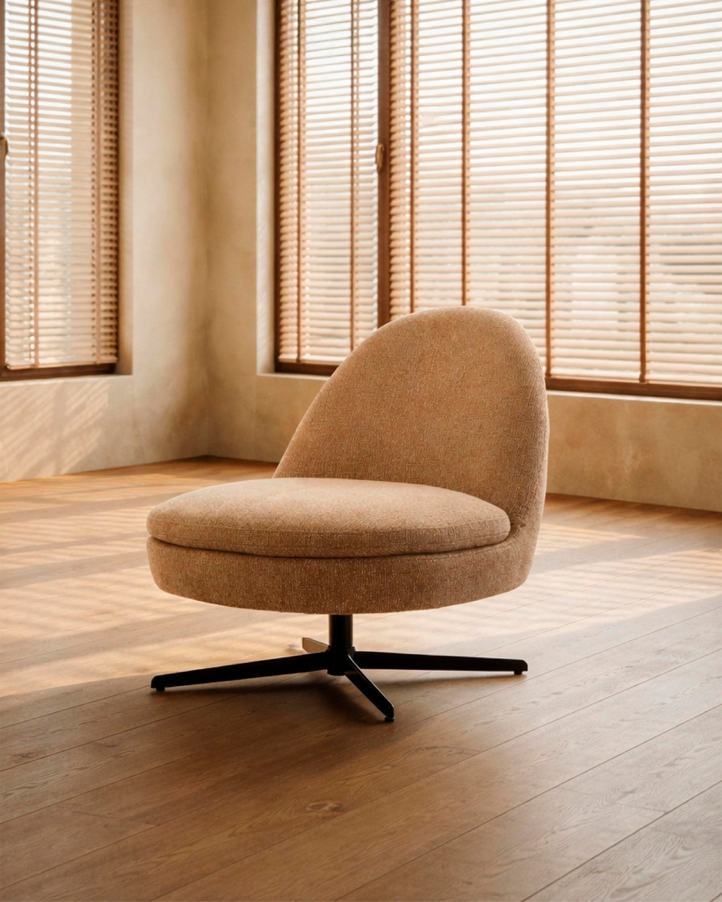 Designed to gently cradle the body, the Vela Lounge Chair features a rounded, cocoon-like seat that offers both comfort and support in a compact footprint. Its sleek swivel base allows for effortless movement while maintaining a clean, refined profile.