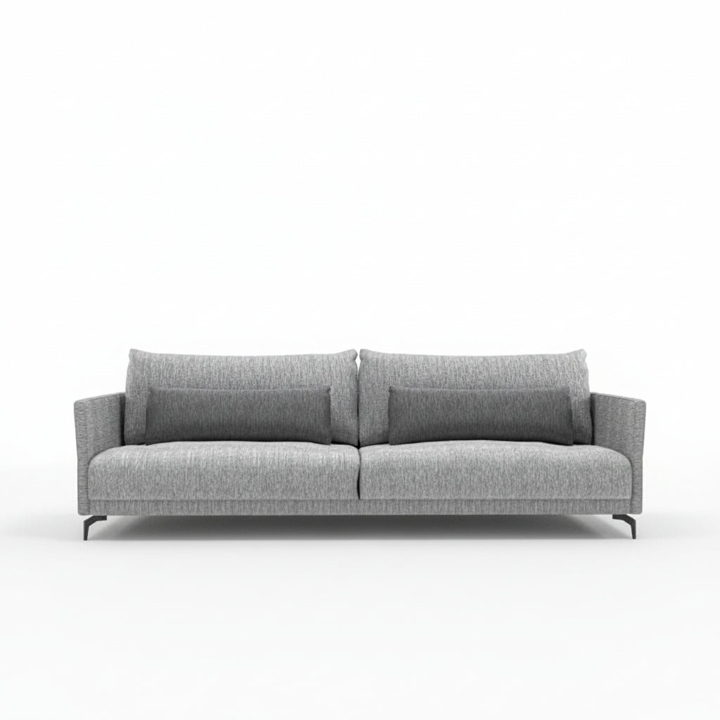 The Linate Sofa: an epitome of modern comfort and versatile design. This exquisite sofa features adjustable back seats that effortlessly swing back, offering a deeper seating depth for ultimate lounging pleasure—perfect for those movie nights or relaxed evenings. Customize your Linate experience with a choice of premium fabrics or luxurious leather, and select from various steel leg finishes to match your decor. Elevate your living space with the perfect blend of functionality and elegance that the Linate Sofa promises.