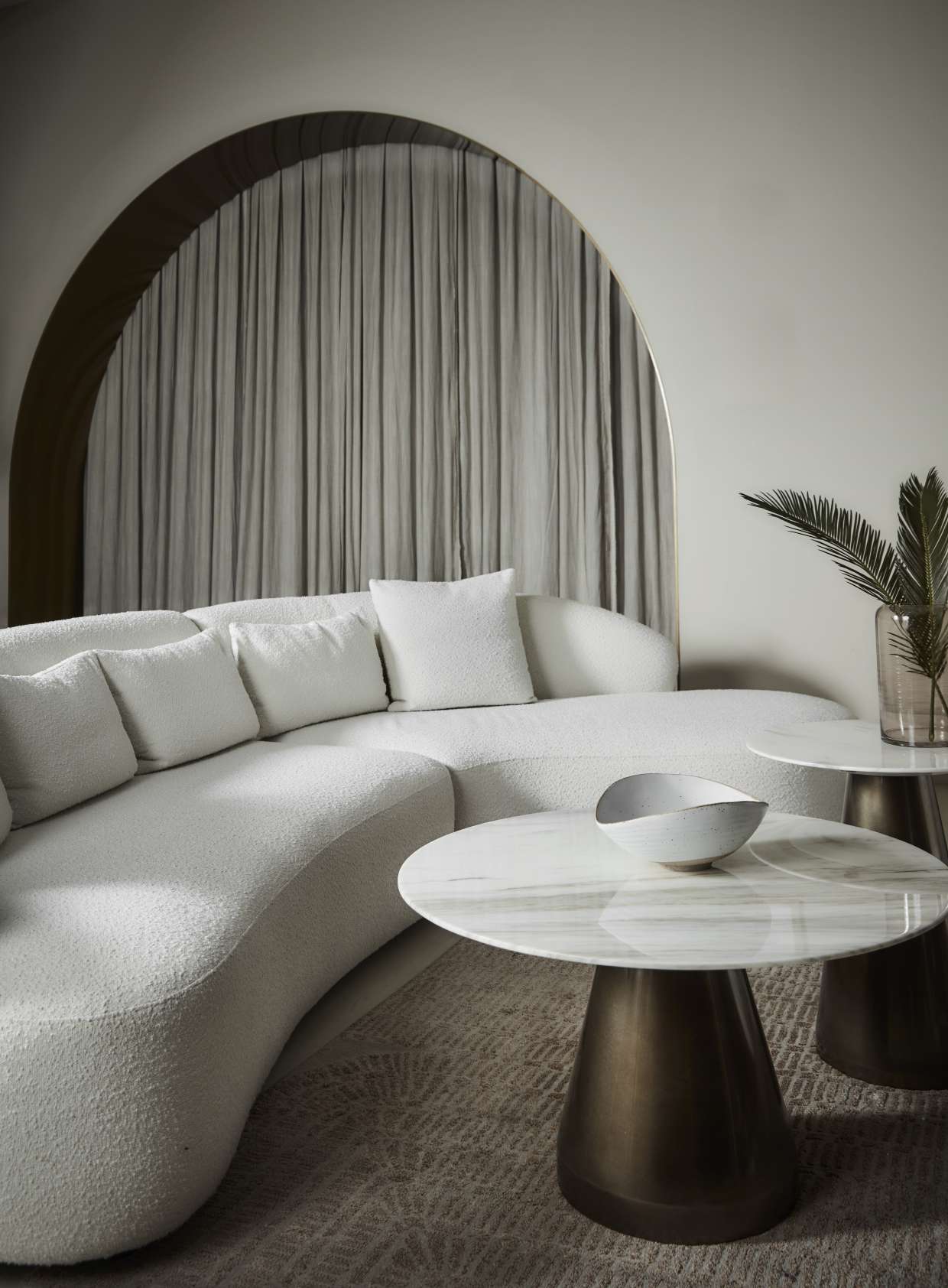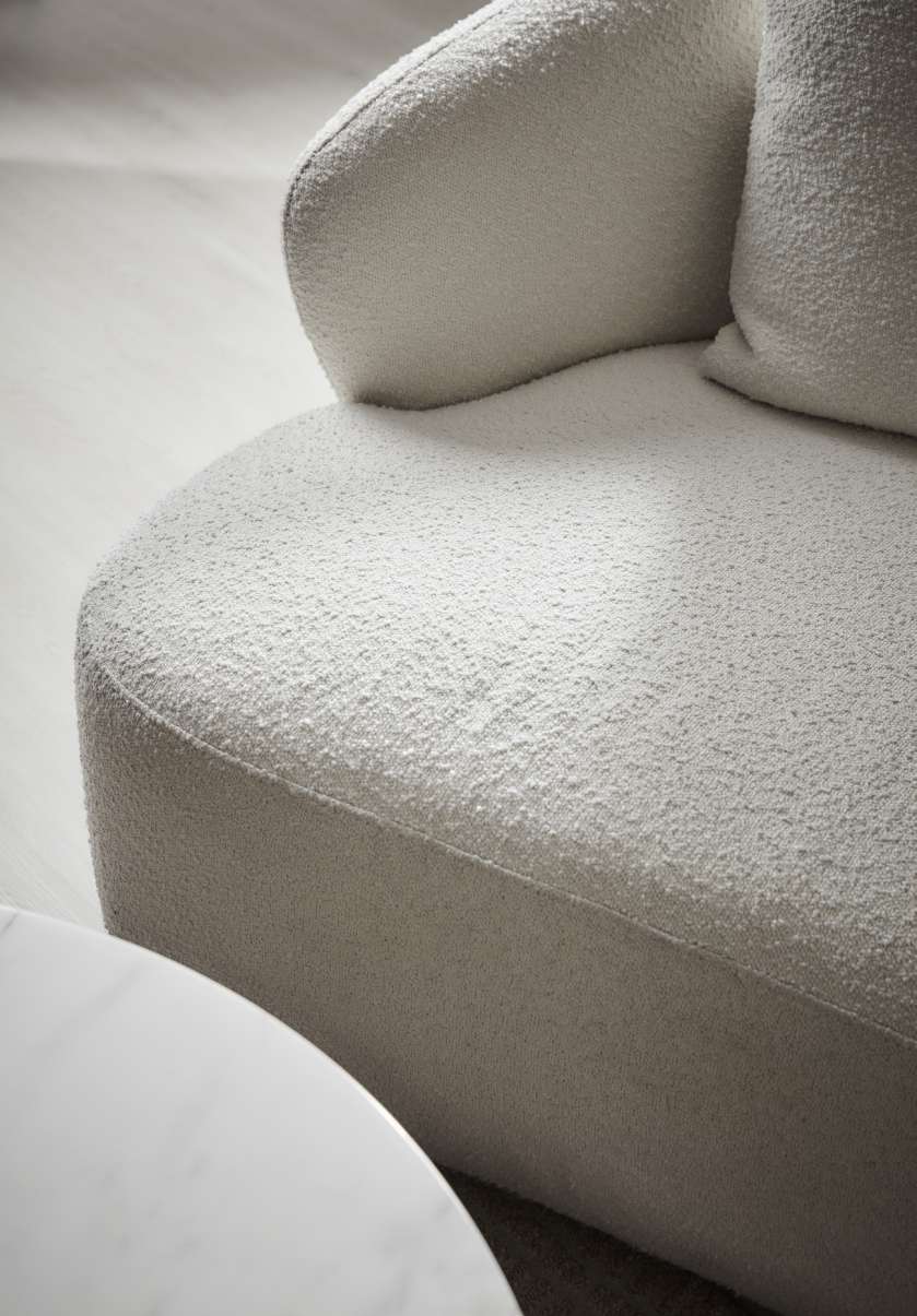 The long curvatures of the Poet Sofa lounges low to the floor. Clean and flowing lines exudes a muted luxe vibe, elevated by the use of unconventional shapes. This Art Deco Brutalist style adds a raw yet refined piece to your space.