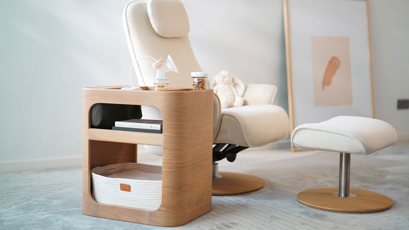Designed with both style and functionality in mind, this side table is an ideal addition to your nursery, providing convenient storage and easy access to all your breastfeeding necessities. Best used next to the Hegen Recliner, you are free from the hassle of getting up and sitting down during nursing, pumping or latching sessions.